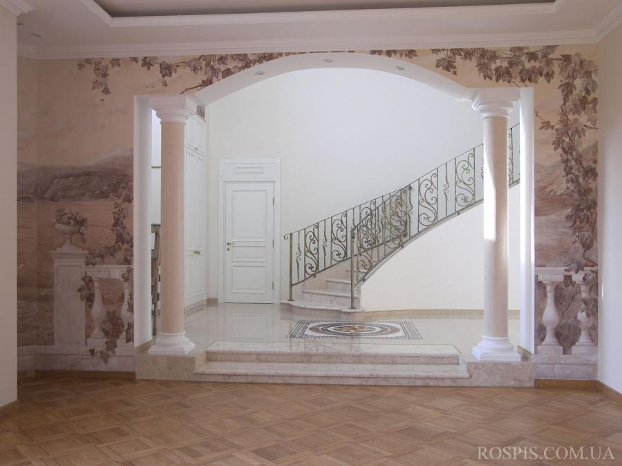 Художественная роспись требует от художника умения работать с архитектурой. Такие работы отличаются более высоким уровнем проектирования и исполнения.