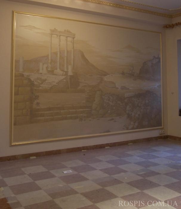 Художественная роспись стены, выполненная в монохроме. Киев, мастерская Круг